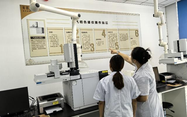 武汉卷烟厂实验室检验员正在学习《气相色谱仪器操作规程》。陈昱竹摄