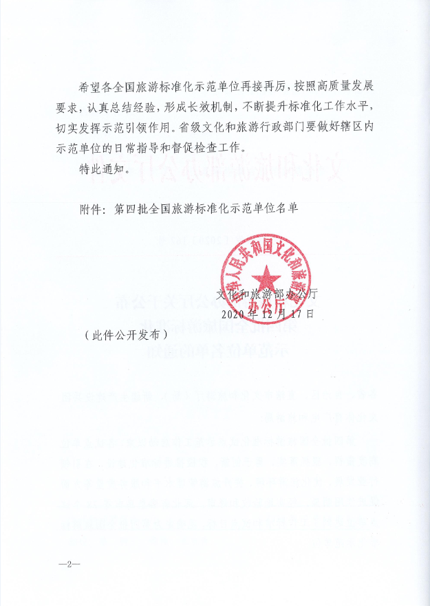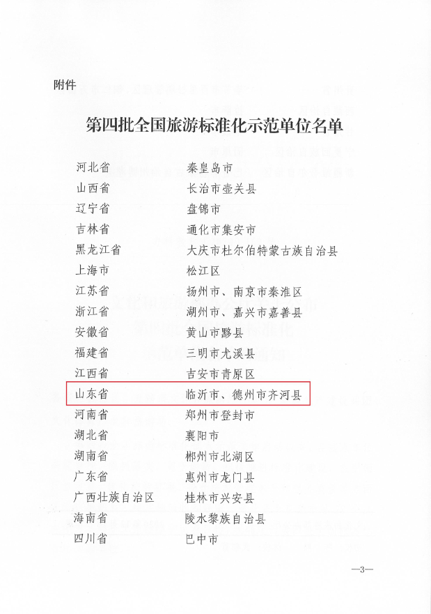 2020年12月17日,文化和旅游部公布了第四批全国旅游标准化示范单位名单(28个),由山东标益信息咨询有限公司提供技术支撑的山东省临沂市、山东省德州市齐河县成功被确定为第四批全国旅游标准化示范单位。