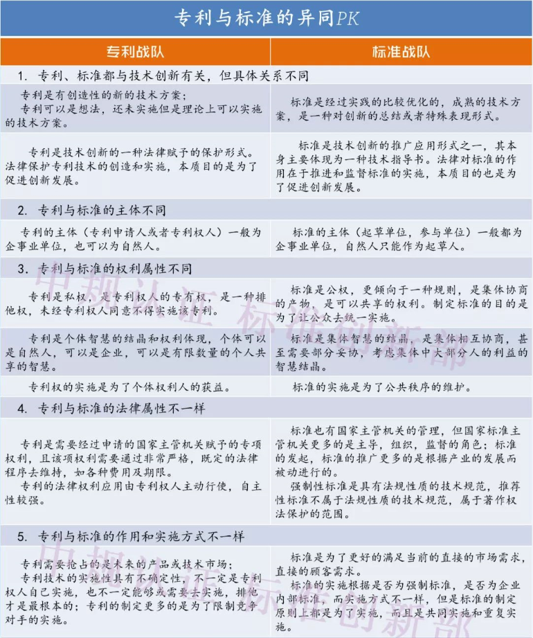 以下通过“专利战队”与“标准战队”的争锋对抗,我们可以更加直观的看到专利与标准的异同,也能对专利和标准的理解进一步加深。