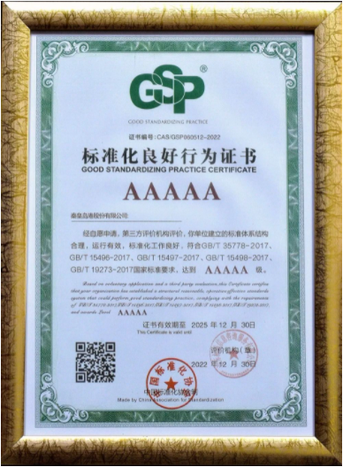 秦港股份公司高度重视标准化工作。在2021年成功创建AAAA级标准化良好行为企业的基础上,继续向AAAAA级目标迈进。公司总裁亲自挂帅,组织专班,制定下发实施方案、任务清单,修订、完善《标准化发展规划》《标准化管理办法》《企业标准化工作评价与改进》等一系列重要基础性文件。组织在用标准全面审查,完善标准内容,修订标准、制度千余项;开展监督检查与自我评价,促进标准体系有效运行;构建功能完备的标准化管理信息平台,为标准化工作提供基础性、系统性支撑。