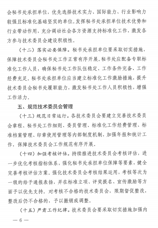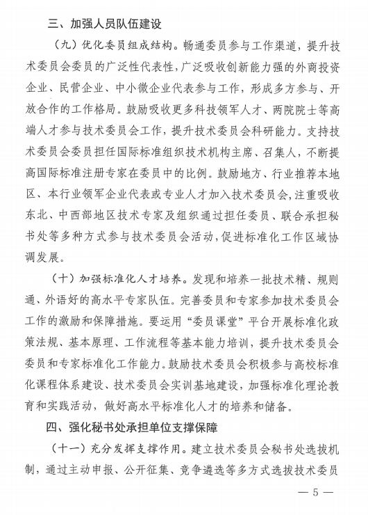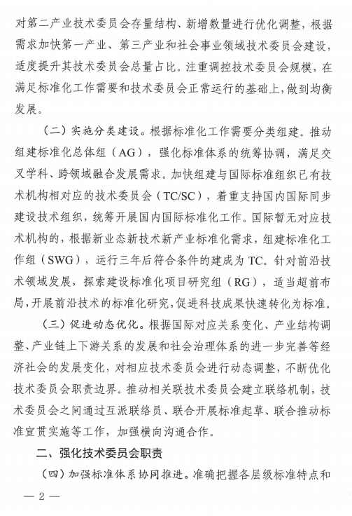 《指导意见》从优化技术委员会体系、强化技术委员会职责、加强人员队伍建设、强化秘书处承担单位支撑保障、规范技术委员会管理等五个方面,提出了15条具有针对性、可操作性的措施,强调各相关单位要持续健全工作机制,完善配套措施,形成政府、企业和社会力量共同建设、共同治理、多方支持的良好环境,确保技术委员会健康发展,为标准化工作提供有力技术支撑。