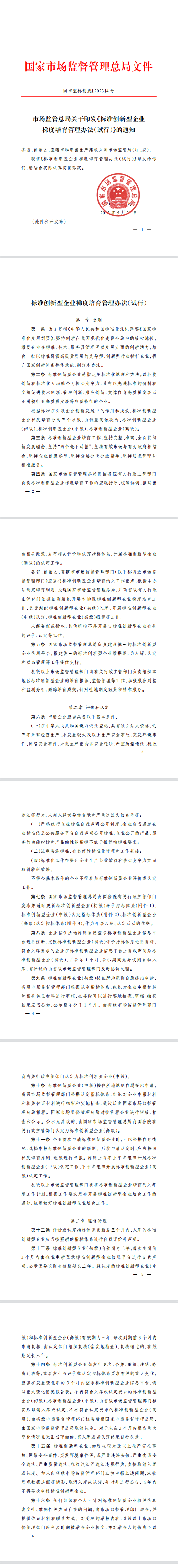 市场监管总局关于印发《标准创新型企业梯度培育管理办法(试行》的通知