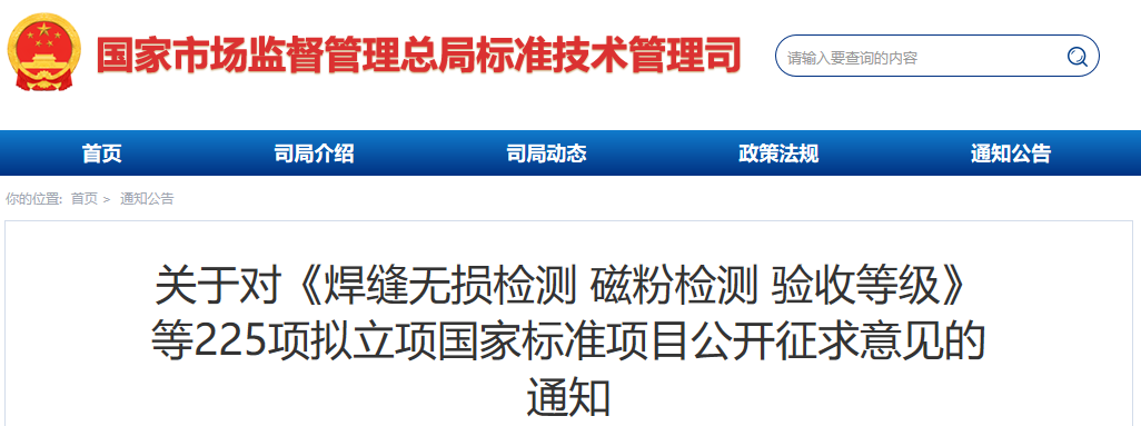 导 读 日前,《关于对〈焊缝无损检测 磁粉检测 验收等级〉等225项拟立项国家标准项目公开征求意见的通知》正式发布。具体内容如下: 各有关单位: 经研究,国家标准委决定对《焊缝无损检测 磁粉检测 验收等级》等225项拟立项国家标准项目公开征求意见,征求意见截止时间为2023年7月5日。请登录请登录标准技术司网站征求意见公示网页http://std.samr.gov.cn/gb/gbSuggestionPlan?bId=10001282,查询项目信息和反馈意见建议。 225项拟立项国家标准项目序号 项目中文名称 制修订 截止日期 1 连续流动分析光电比色法分析通则 制定 2023/7/5 2 城镇给排水用爆管保护紧急关断阀技术要求 制定 2023/7/5 3 道路车辆 低压电气系统性能要求及试验方法 制定 2023/7/5 4 电力变压器 第16部分:风力发电用变压器 修订 2023/7/5 5 寻址 第3部分:地址数据质量 制定 2023/7/5 6 乘用车 对开路面直线制动 车辆稳定性试验方法 制定 2023/7/5 7 商用车 对开路面直线制动 车辆稳定性试验方法 制定 2023/7/5 8 智能网联汽车 车控操作系统技术要求及试验方法 制定 2023/7/5 9 道路车辆 自动驾驶传感器与数据融合单元间数据通信 逻辑接口 制定 2023/7/5 10 腈水合酶纯度和活性的测定 制定 2023/7/5 11 区块链和分布式记账技术 服务运营 信息服务监管框架 制定 2023/7/5 12 区块链和分布式记账技术 互操作 治理参考架构 制定 2023/7/5 13 工业互联网平台 设备健康管理规范 制定 2023/7/5 14 区块链和分布式记账技术 服务运营 区块链即服务通用技术要求 制定 2023/7/5 15 碰撞事故车辆调查与安全性分析指南 制定 2023/7/5 16 区块链和分布式记账技术 应用服务 电子签章应用指南 制定 2023/7/5 17 区块链和分布式记账技术 标识体系 对象标识符(OID)编码规则 制定 2023/7/5 18 交流1000V和直流1500V及以下低压配电系统电气安全 防护措施的试验、测量或监控设备 第11部分:TT、TN和IT系统中剩余电流监视器(RCM)的有效性 制定 2023/7/5 19 信息化和工业化融合管理体系 从业人员能力要求 制定 2023/7/5 20 肝素酶活性的测定 制定 2023/7/5 21 工业互联网平台 园区服务规范 制定 2023/7/5 22 直流电能表检验装置 制定 2023/7/5 23 区块链和分布式记账技术 应用服务 分布式身份参考架构 制定 2023/7/5 24 纯电动汽车火灾缺陷分析方法 制定 2023/7/5 25 区块链和分布式记账技术 服务能力成熟度评价模型 制定 2023/7/5 26 高压直流系统 交流滤波器规范和设计评估导则 第1部分:概论 制定 2023/7/5 27 区块链和分布式记账技术 基础设施 分布式存储技术要求 制定 2023/7/5 28 硫酸软骨素酶活性的测定 制定 2023/7/5 29 区块链和分布记账技术 互操作 跨链通用技术规范 制定 2023/7/5 30 道路车辆 气压制动系 第1部分:管、端面密封外螺纹接头和螺纹孔 修订 2023/7/5 31 非金属矿产品词汇 第1部分:通用术语和定义 修订 2023/7/5 32 道路车辆 气压制动系 第2部分:管、锥面密封外螺纹接头和螺纹孔 制定 2023/7/5 33 光纤光缆线路维护技术 第3部分:基于光传感技术的光缆识别 制定 2023/7/5 34 掺铒光纤放大器 第2部分:L波段掺铒光纤放大器 修订 2023/7/5 35 可信移动电子文件框架 安全可靠的移动电子业务的要求、功能和评价 制定 2023/7/5 36 高压直流系统 交流滤波器规范和设计评估导则 第4部分:设备 制定 2023/7/5 37 棉与涤混纺印染布 修订 2023/7/5 38 不间断电源系统(UPS) 第2部分:电磁兼容性(EMC)要求 修订 2023/7/5 39 养老机构老年人保护性约束服务规范 制定 2023/7/5 40 养老机构生活照料服务基本规范 制定 2023/7/5 41 化妆品中乌洛托品的测定 液相色谱-串联质谱法 制定 2023/7/5 42 气焊设备用安全装置 第1部分:阻火器 制定 2023/7/5 43 道路车辆 轻合金车轮 冲击试验方法 修订 2023/7/5 44 化妆品中苔黑醛和氯化苔黑醛的测定 液相色谱-串联质谱法 制定 2023/7/5 45 天然气螺杆膨胀机(组) 制定 2023/7/5 46 天然酯 在电气设备中的维护和使用导则 制定 2023/7/5 47 船舶自动识别系统(AIS)A类设备性能和测试要求 制定 2023/7/5 48 以云母为基的绝缘材料 第4部分:云母纸 修订 2023/7/5 49 交流1000V和直流1500V及以下低压配电系统电气安全 防护措施的试验、测量或监控设备 第12部分:电量测量和监视装置(PMD) 修订 2023/7/5 50 电工电子产品着火危险试验 第1部分:着火试验术语 修订 2023/7/5 51 化学品 快速雄激素干扰活性报告(READR)试验 制定 2023/7/5 52 化学品 液态粪肥中的厌氧转化试验 制定 2023/7/5 53 工业炉及相关工艺设备 能量平衡测试及能效计算方法 第3部分:间歇式熔铝炉 制定 2023/7/5 54 棉及化纤纯纺、混纺印染布检验、标识与包装 制定 2023/7/5 55 塑料 聚醚醚酮(PEEK)模塑和挤出材料 第1部分:命名系统和分类基础 制定 2023/7/5 56 供热采暖系统水处理规范 制定 2023/7/5 57 棉本色帆布 修订 2023/7/5 58 服装衬布外观疵点检验方法 修订 2023/7/5 59 机织粘合衬 修订 2023/7/5 60 轨道交通电子设备 列车通信网络(TCN) 第4-2部分:基于MVB的列车通信网络试验方法 制定 2023/7/5 61 航空障碍物标志与照明技术要求 制定 2023/7/5 62 柔性直流换流阀功率模块可靠性试验方法 制定 2023/7/5 63 摩托车用铅酸蓄电池 修订 2023/7/5 64 电测量数据交换 DLMS/COSEM组件 第86部分:社区网络高速PLC ISO/IEC 12139-1配置 制定 2023/7/5 65 搪玻璃层试验方法 第6部分:高电压试验 修订 2023/7/5 66 中小型旋转电机通用安全要求 修订 2023/7/5 67 电动牙刷 性能测试方法 制定 2023/7/5 68 填充矿