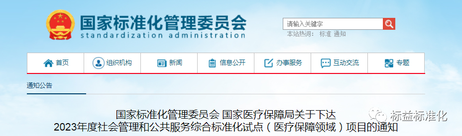 日前,《国家标准化管理委员会 国家医疗保障局关于下达2023年度社会管理和公共服务综合标准化试点(医疗保障领域)项目的通知》正式发布。具体内容如下: