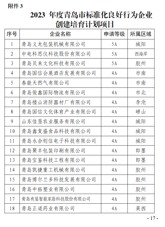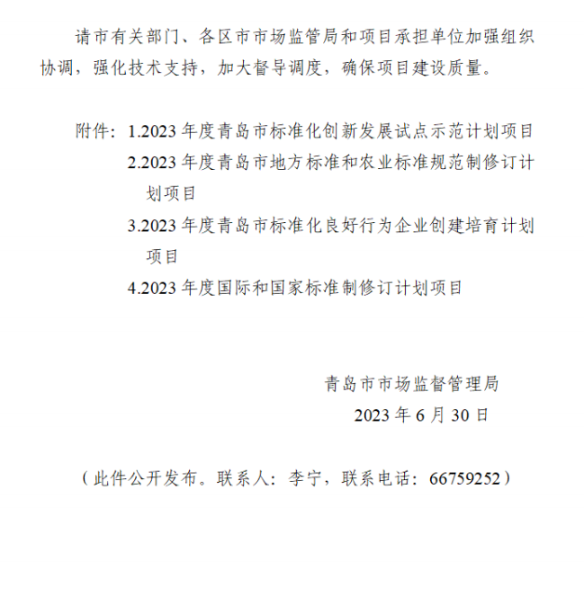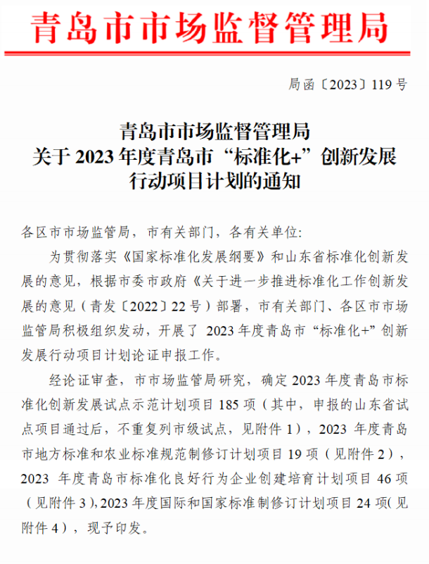 关于2023年度青岛市“标准化+”创新发展行动项目计划的通知