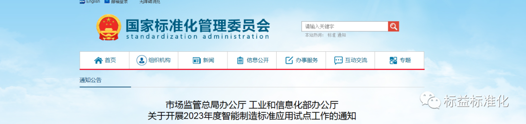 为深入贯彻党的二十大精神,加快推进新型工业化,落实《国家标准化发展纲要》《“十四五”智能制造发展规划》相关部署,发挥标准支撑引领作用,引导制造业企业运用标准化方式组织生产、经营、管理和服务,形成一批标准化、高水平的系统解决方案,推动制造业高端化、智能化、绿色化发展,市场监管总局(国家标准委)、工业和信息化部决定联合开展2023年度智能制造标准应用试点项目申报工作。现就有关事项通知如下: