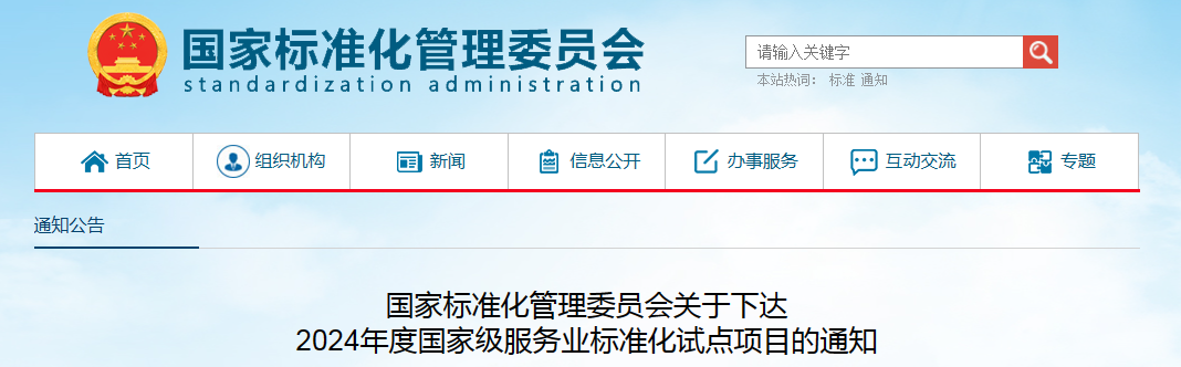 为深入推进服务业标准化试点工作,经各地推荐、专家审查和社会公示,国家标准化管理委员会确定了2024年度国家级服务业标准化试点项目140项(附后)。现下达给你们,并就有关事项通知如下: