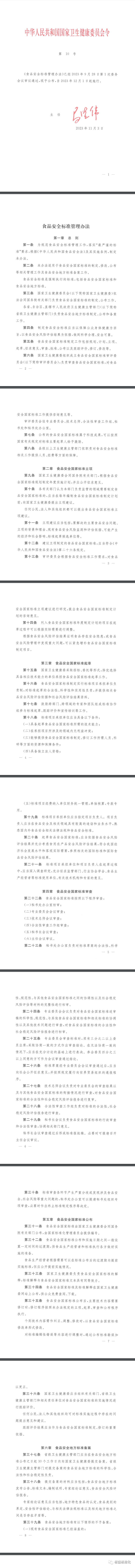 国家卫健委批准发布《食品安全标准管理办法》