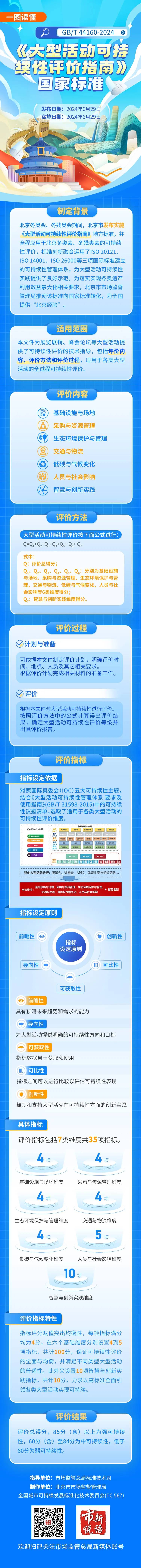 为传承和利用好北京冬奥赛后遗产成果,推动实现冬奥遗产利用效益最大化,近日,市场监管总局(国家标准委)批准发布《大型活动可持续性评价指南》(GB/T 44160-2024)国家标准。