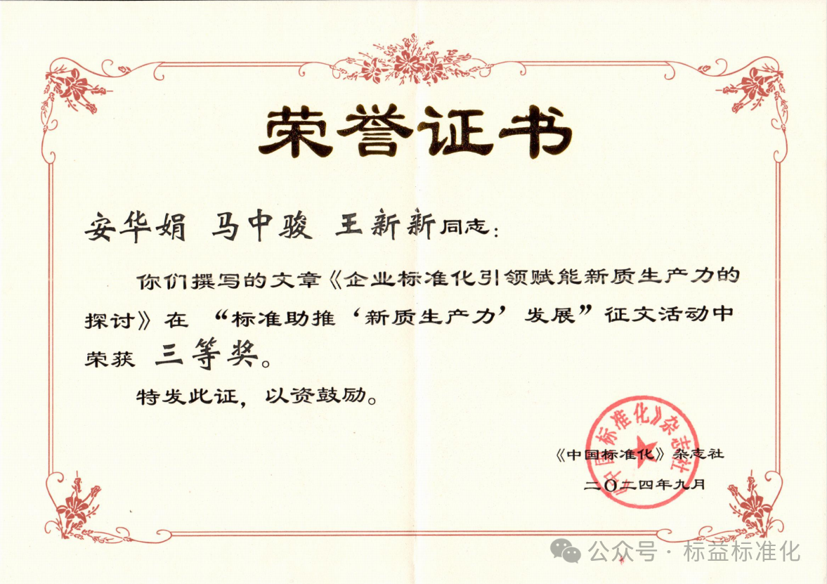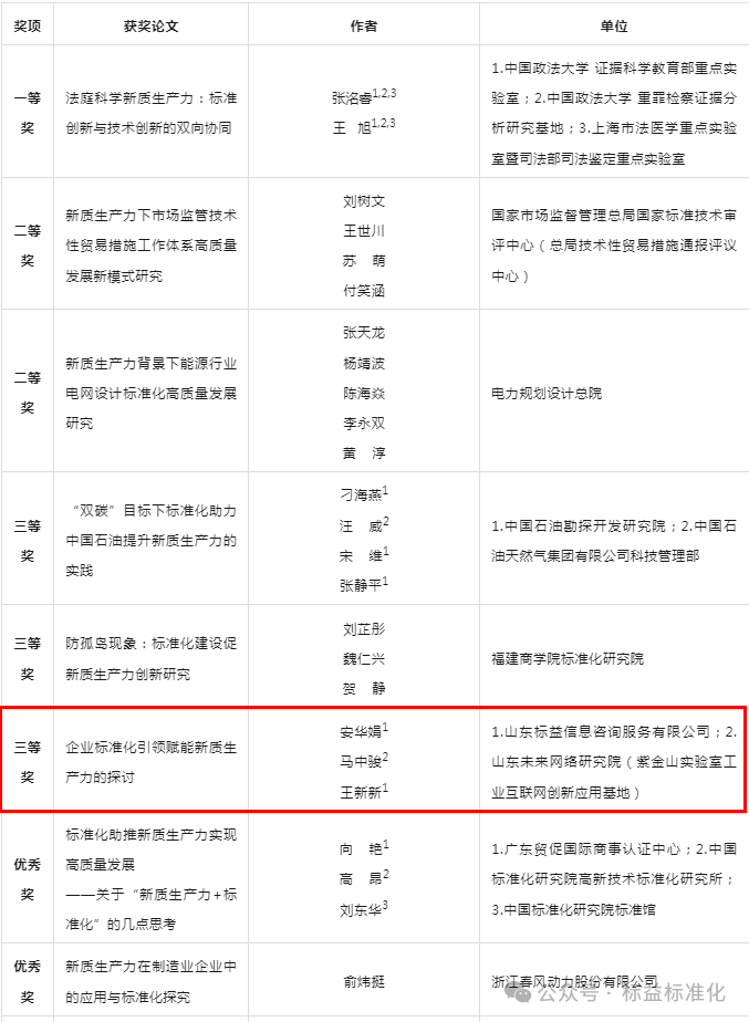 《中国标准化》杂志社旗下《标准科学》杂志开展的“标准助推新质生产力发展”主题征文活动获奖名单揭晓
