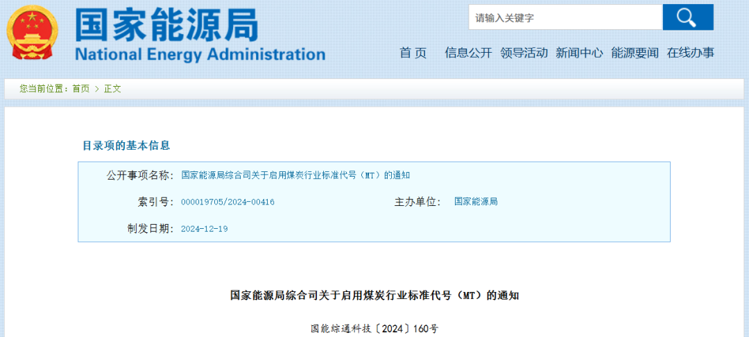 国家能源局综合司关于启用煤炭行业标准代号(MT)的通知