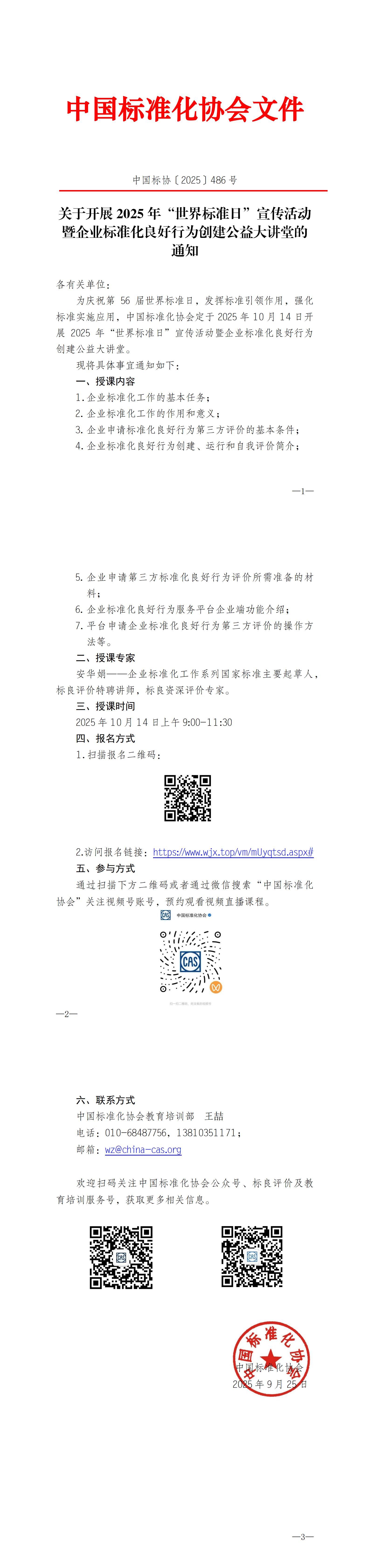 关于开展2025年“世界标准日”宣传活动暨企业标准化良好行为创建公益大讲堂的通知