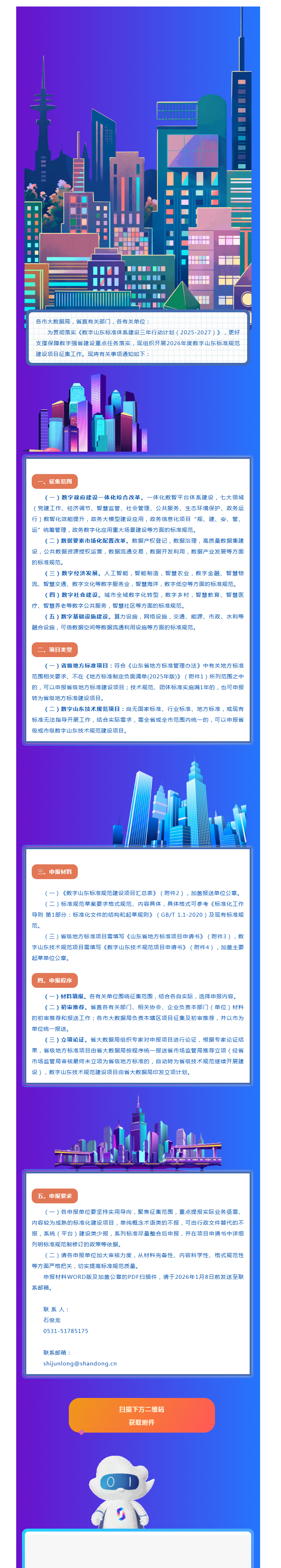 山东省大数据局关于征集2026年度数字山东标准规范建设项目的通知