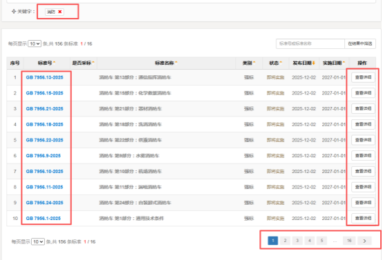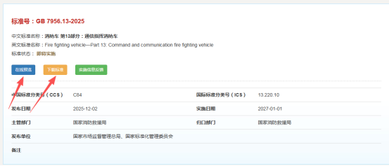 例如,在检索框中输入关键词“消防”,系统将列出所有相关标准列表。