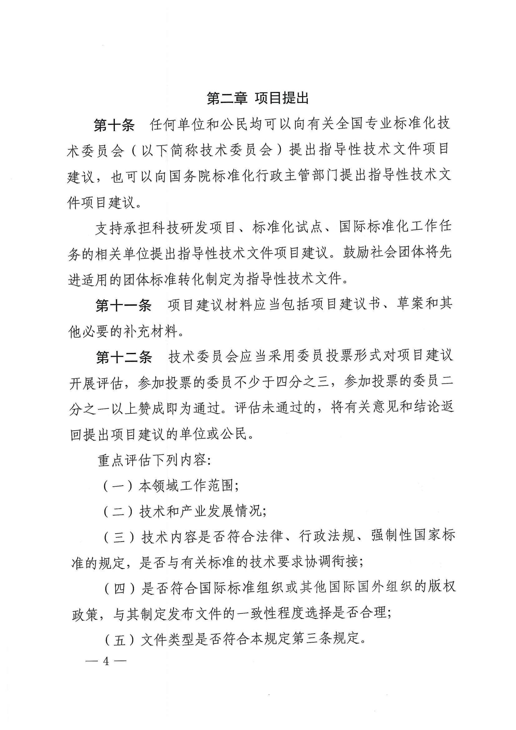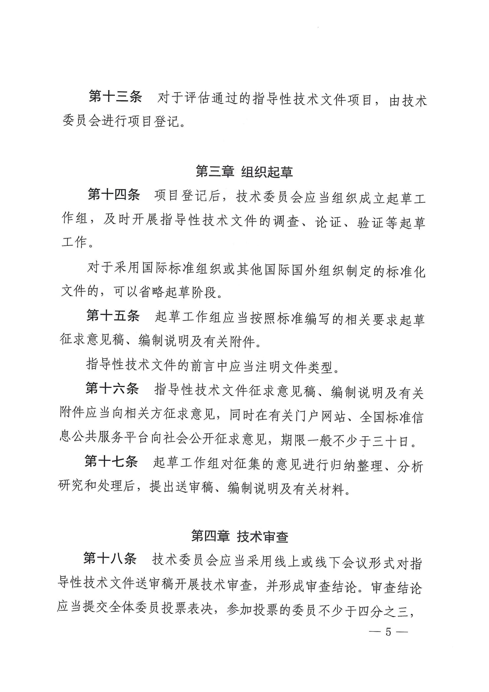 一是增加文件类型。借鉴国际通行做法,将指导性技术文件细分为规范和报告两种。具有一定应用前景但尚处于发展中的新技术可以制定为规范类指导性技术文件,供各方参考采用的资料性信息可以制定为报告类指导性技术文件,丰富了创新技术成果的转化方式。二是项目立项实行登记制。技术委员会对项目建议进行评估后,登记项目信息即可组织起草,不再进行立项审批,以便快速启动研制工作。三是调整技术审查投票通过人数比例。审查通过条件由参加投票委员的三分之二调整为二分之一以上赞成即为通过,目的是增加技术文件供给数量。四是加快研制速度。将公开征求意见时间由原来的60日缩短至30日,项目登记起草到报批的期限压缩至12个月以内,推动技术文件加快出台。